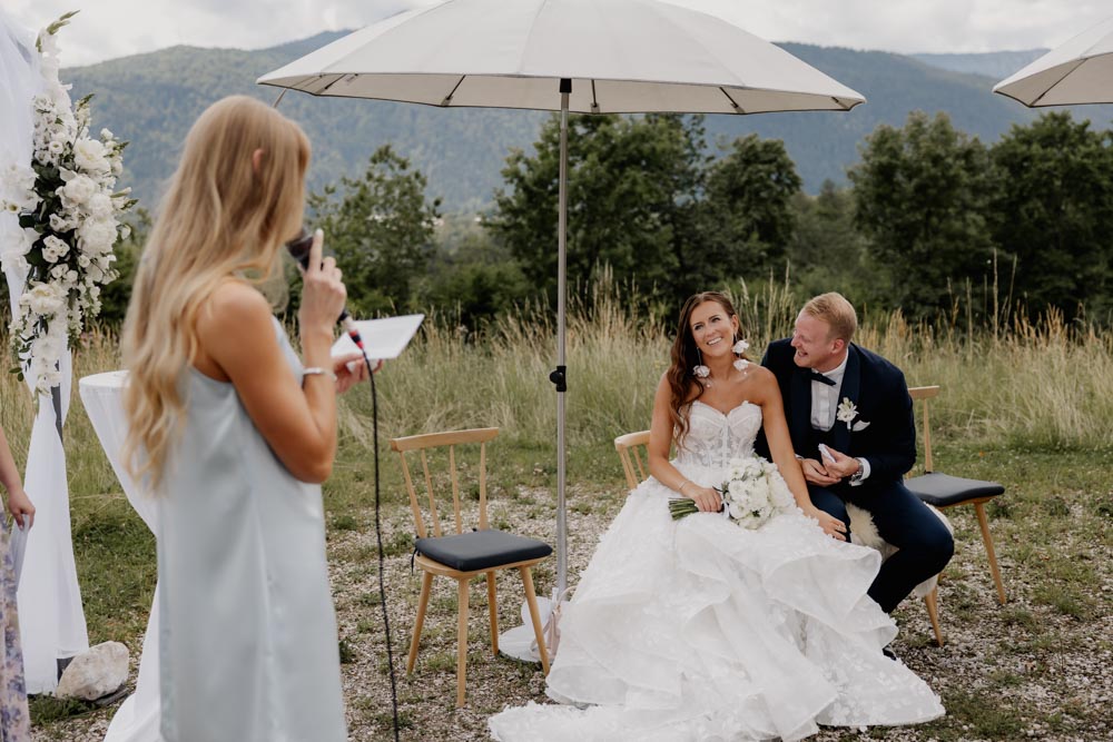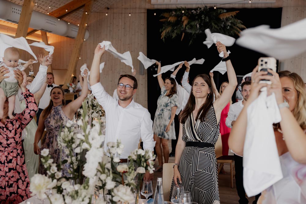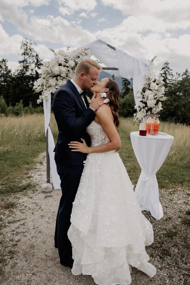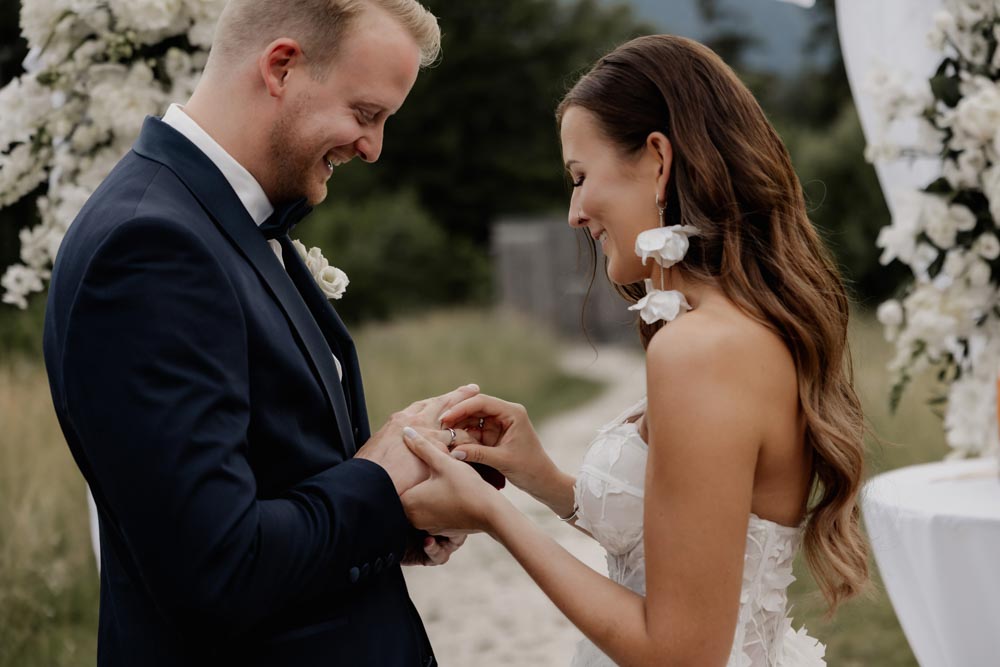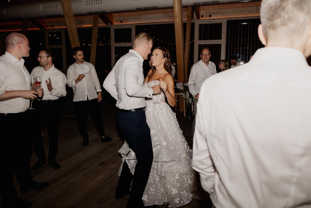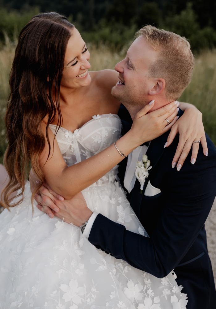 Am Hochzeitstag selbst wurde es dann richtig emotional: Vom liebevollen Getting Ready über die freie Trauung voller Gefühl – Gänsehautmomente inklusive – bis hin zur Eröffnung des Abendprogramms und der Tanzfläche. Die Abendstimmung beim Paarshooting hat diesen besonderen Tag nochmals wundervoll abgerundet.